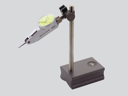 - Schwenkbarer Halter mit Aufnahme Ø 8 und Ø 4 mm sowie Schwalbenschwanzprofil für Fühhebelmessgeräte