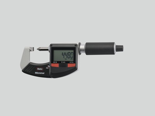 - Measuring surfaces: Anvil with narrow web, pointed spindle